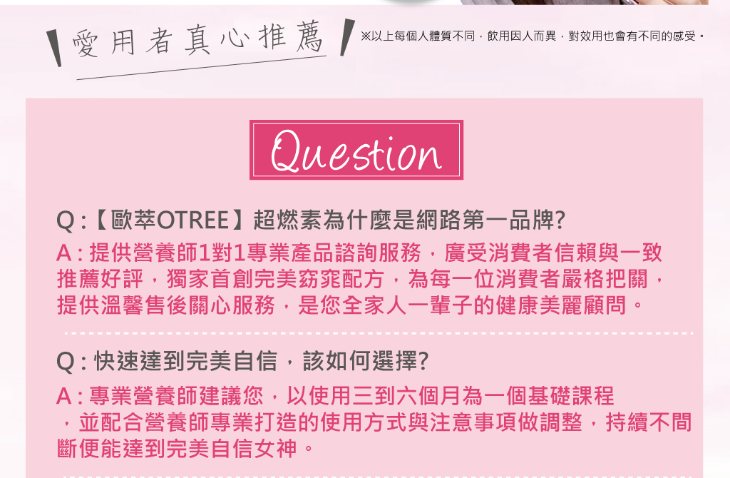 諮詢師建議,至少使用3個月以上,持續使用不間斷為最佳狀態。