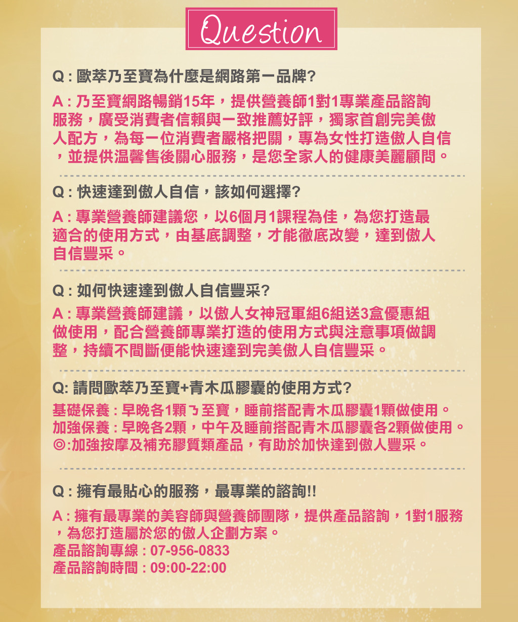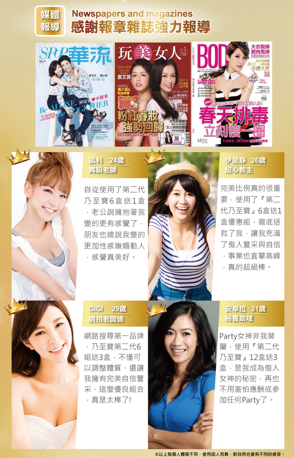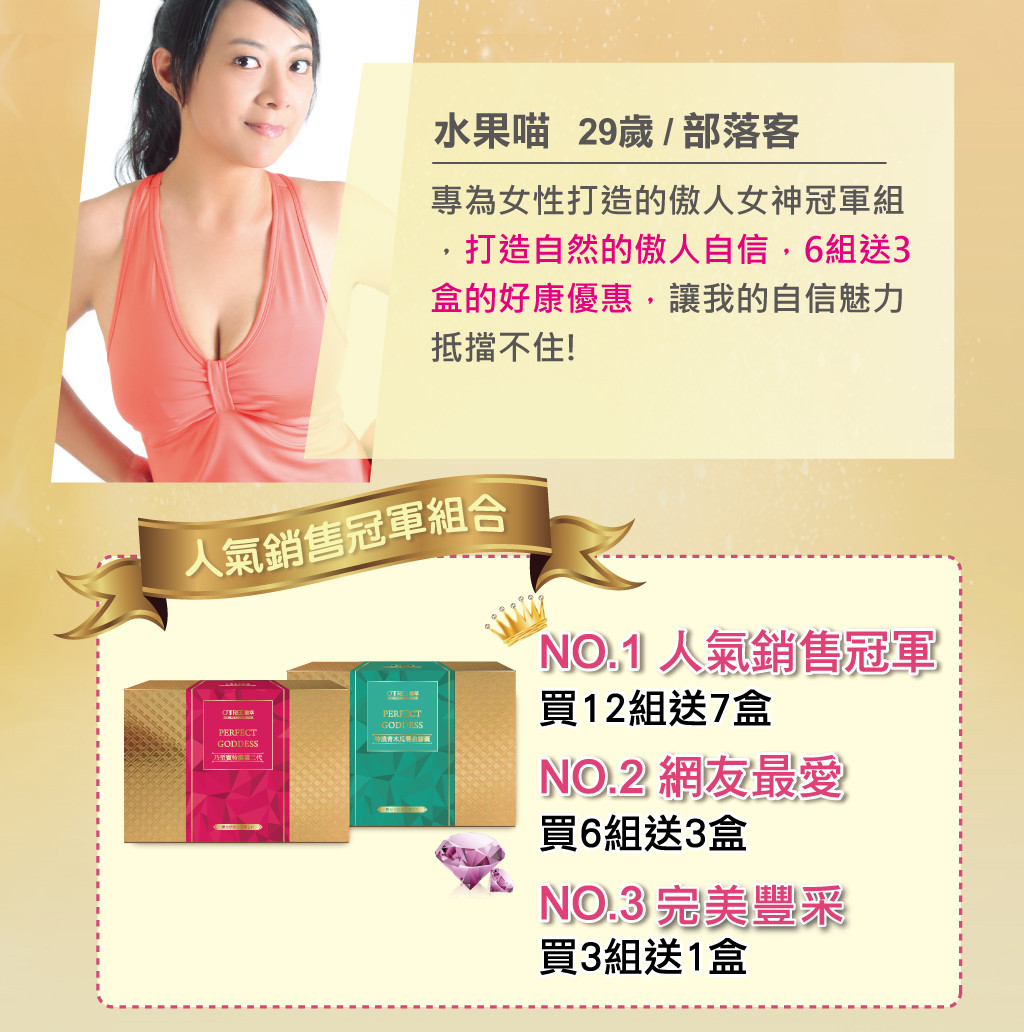 ‧使用期間建議搭配【特濃青木瓜豐盈膠囊】、【鑽透膠原蛋白美顏粉】或【活力美胸精華按摩使用】,使目標更快速達成。